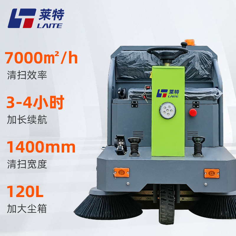 LT-S16型,小型敞篷驾驶式扫地车,清扫宽度1400mm,工作时间4-6小时,工作效率:12600㎡/h,性能稳定可靠,采用的是大品牌铅酸免维护电池。应用场景:工厂车间的过道、小区内较窄的道路、学校、公园等清洁面积在30000平米以内的。